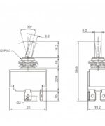 Interruttorecon levetta illuminata, completo di cappuccio trasparente stagno. Amperaggio massimo 16A a 12V, 10A a 24V. Dimensioni mm. 35 x 20,4 x 21h. Perno Ø mm. 12.