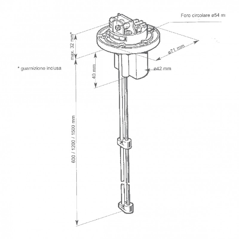 SENSORE LIVELLO ACQUA MM.600-1200