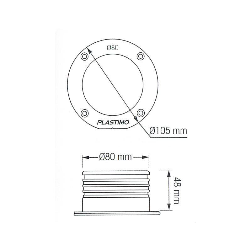 Raccordo drittofissaggio con 4 viti. Può essere abbinato a prese d’aria rotonde o quadrate.